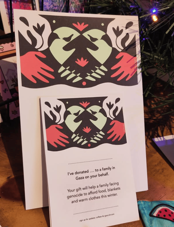 Note: Although this family's fundraiser is in GBP, if you click on the donate button you'll see that you have the option to give in several different currencies. 2) Winter flooding and cold destroyed several families' belongings Winter in Gaza brings not only cold weather that families must face in tents and damaged buildings. It also frequently brings torrential rains. A couple of weeks ago, flooding destroyed the belongings of many of our families. The flood water was also contaminated with sewage and poses significant health risks such as hepatitis and other communicable diseases. Many of you supported Adbullah in evacuating from Gaza City after their home was bombed and a wall collapsed on his young son Amir. Abdullah has diabetes and other complex chronic health conditions. He and his wife Haneen and their 4 children barely have enough support to purchase food, let alone life sustaining medication. Abdullah and Haneen's tent was recently flooded and the belongings they'd only recently purchased were soaked. He is too sick to do anything to repair the tent or salvage his belongings, and his tent is not sufficient to keep the rain out. The family needs winter clothes, blankets, tarps, and urgently need reliable and consistent donors to help stabilize providing for his and his family's basic needs including his required medication. >>Donate to Abdullah and Haneen (click on the campaign's donate button to see a variety of currency options)>> Nourhan and her two young children Najat (age 5) and Mohammed (age 3) have been displaced more times than we can count, having to replace their belongings each time. The family's belongings were submerged when their tent was flooded, and all of their food was spoiled. It had previously taken months of fundraising to replace their belongings and Nourhan once again finds herself being forced to start over. They need new mattresses, bedding, and other basics. >>Donate to Nourhan (donations can be made in Euros or USD)<< Tahani and her husband Mohammed have four teenage children (Munther, Jana, Hala, and Ezz). Their home was destroyed early in the war. They have been living in a tent and have been displaced many times. Tahani's family is completely reliant on our donor community for day to day items like food. Many of the family's belongings, including their bedding, were ruined in the recent flooding. >>Donate to Tahani (donations can be made in Swedish krona or USD)<< 3) Honor a loved one with this beautiful holiday card when you give to a CFG family Have you considered making a gift to one of our Coffees for Gaza families in honor of a friend or family member? Billy Ruffian has designed a beautiful holiday card that you can print out to notify them of your gift. Simply make a donation to any of our families. You can choose one of the families listed above, or find the fundraising campaigns here for all of the families we are in relationship with. Then, reply to this email letting me know you've made a gift and I'll email you the printable card. 4) A virtual baby shower for Oday and Rawan Pediatric dentists Oday and Rawan welcomed their first baby Yaman (pictured here) during the genocide, and Yaman will become a big brother any day now! Coffees for Gaza volunteer Elisabeth Sophia is organizing a virtual baby shower to help the family with the baby clothes, nappies, and other essentials to surround him with love and warmth. >>Take part in the baby shower for Oday and Rawan's bundle of joy!<< 5) Attention monthly donors on Open Collective: action needed For more than a year, Coffees for Gaza superstar volunteer Billy Ruffian has managed our monthly giving community on Open Collective. Collecting donations and allocating them among urgent needs families has taken up a huge amount of time for Billy and the other handful of volunteers who help with this task. We now need to move to a more sustainable donation system. You can get all the details on why we are making this change here. If you currently have an Open Collective monthly subscription, or if you are interested in providing one of our families with a monthly donation, please fill out this Family Sponsorship form. We will match you with a family whose fundraising campaign (i.e. GoFundMe, Chuffed, etc) is carried out in your local currency, along with instructions about how to set up a monthly gift directly to their campaign. You can then cancel your monthly donation on Coffees for Gaza's Open Collective. Open Collective has instructions on how to cancel a donation here. Thank you for your flexibility as we make this shift, which we hope will make our work more sustainable both for our volunteers and our families. Need help making this transition? Hit reply and let me know. With love and solidarity, Rebekah Gienapp and the Coffees for Gaza team Invite a friend to subscribe | Coffees for Gaza on Instagram | Family Sponsor Program |